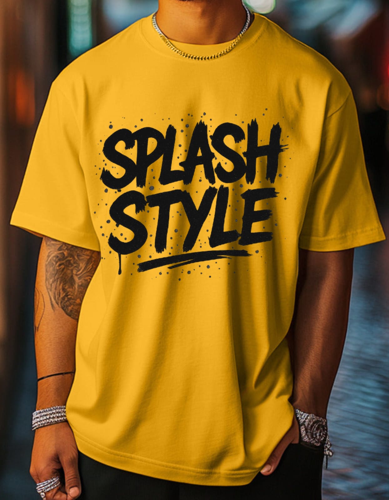 Step into bold expression with the SplashStyle Oversized Mustard Yellow Tee—featuring the eye-catching SPLASH Dots logo that adds instant streetwear edge to your everyday wardrobe. Vibrant, confident, and full of personality, this tee does the talking for you.